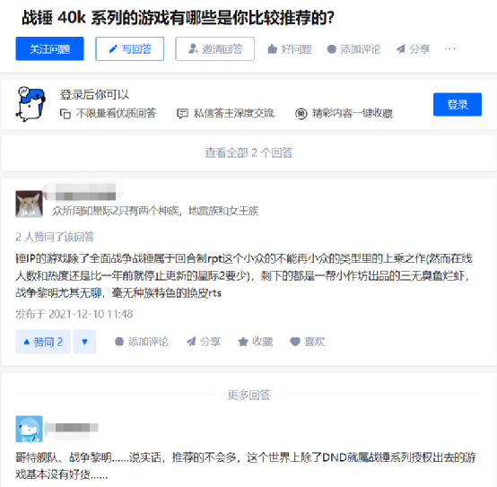 《战锤40K》游戏始终活跃还有另一个重要原因,那便是忠实的粉丝群体。这些热情无比的粉丝们对IP的忠诚度相当之高,这让他们对任何这个IP的衍生作品都有极大的兴趣。《战锤40K》在游戏领域缺少成就,虽然降低了玩家们的期待,但也让粉丝们越来越不挑食。对于他们来说,只要有《战锤40K》IP的游戏,他们就愿意尝试。游戏开发者只要能拿出以这个IP为题材的产品,就一定会有玩家为他们的游戏买单。