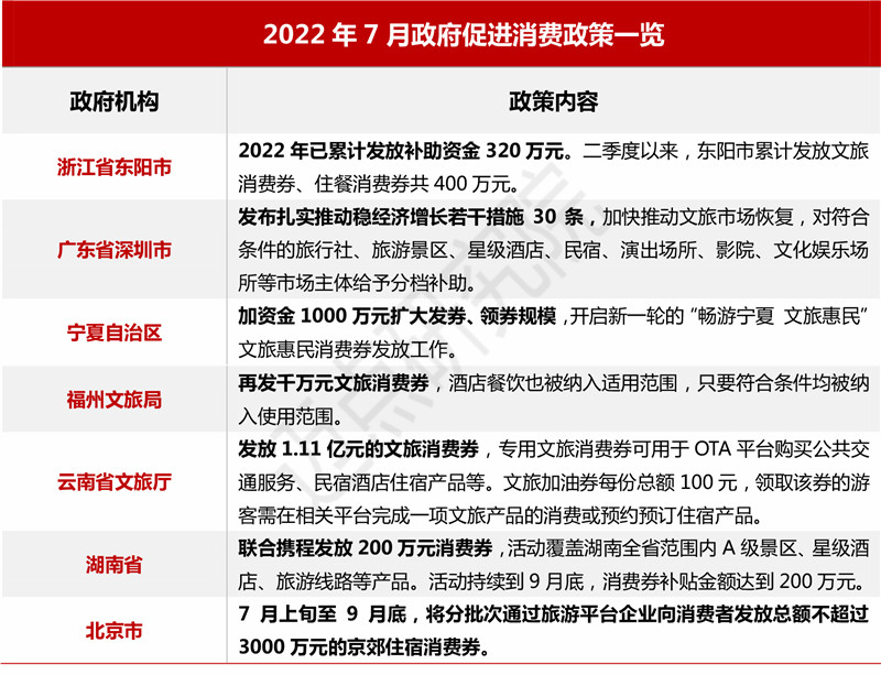 7月,随着疫情反弹进入尾声,政策层面稳经济导向、解冻旅游出行、助推消费反弹、纾困政策逐步落地及规范助力酒店业发展,叠加暑期旅游旺季,虽然部分地区疫情有所反复,但整体冲击可控,市场信心正在重塑,酒旅业迎来较大提升与反弹。数据显示:新疆7月已累计接待游客约2554万人次,同比增长15.7%,独库公路变成“堵哭公路”、“民宿一晚17000元”、多地景区挤爆等也频繁登上微博热搜。携程数据显示,截止7月12日,暑期旅游产品订单总量环比上涨超过九倍,增势迅猛;机票暑运搜索指数已追平2019年;酒旅市场回暖至去年七成,暑期跨省游酒店占比有望过半;亲子游进入暑期预订高峰期,亲子酒店预订较疫前增长20%。