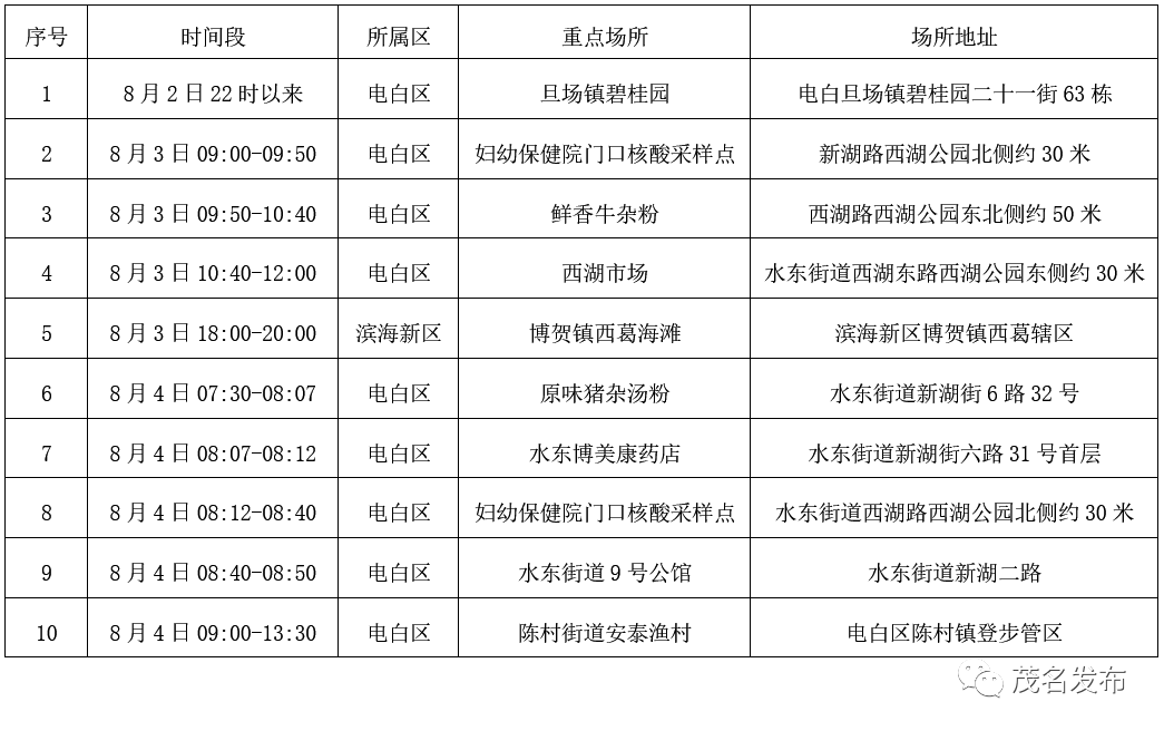 “茂名发布”微信公众号8月5日消息,茂名市电白区新型冠状病毒肺炎疫情防控指挥部通报,8月4日,电白区在省外返茂人员中发现1例核酸检测阳性个案,电白区立即启动应急响应,依规有序开展流调溯源、核酸检测、隔离管控、环境消杀等处置工作。现将有关情况通报如下: