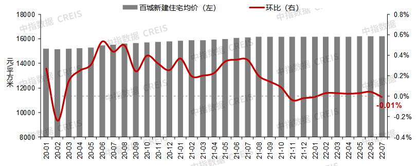 图:2020年1月至2022年7月百城新建住宅均价及环比变化