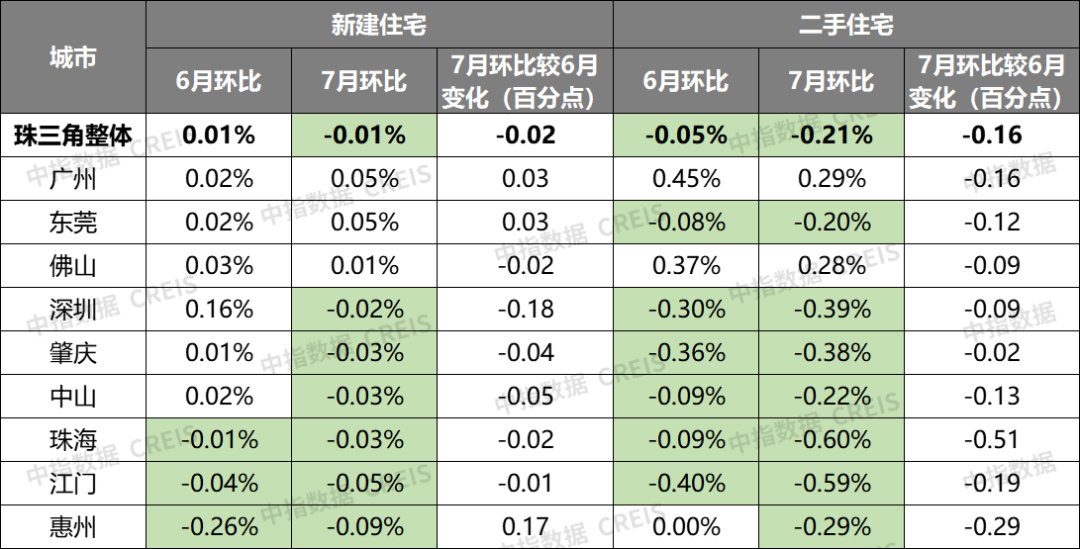 珠三角城市群新房及二手房价格环比双降,区域内多城市房价下跌