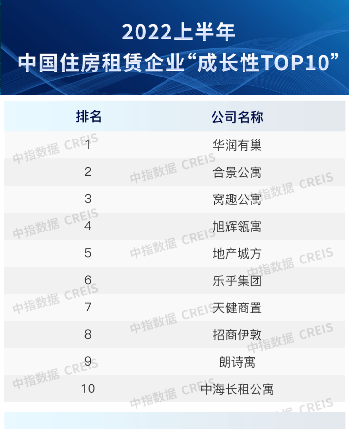 榜单说明:(1)指标体系,以成长性为主,综合考虑规模性、盈利性、传播力、融资能力等,全面考察住房租赁企业的成长能力。(2)数据来源,中指数据库、企业提报、公开资料收集。