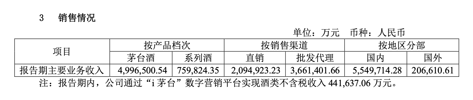 在贵州茅台8月3日发布的《2022年半年度报告》中,直销渠道、批发渠道分别实现业务收入209.49亿元、366.14亿元。
