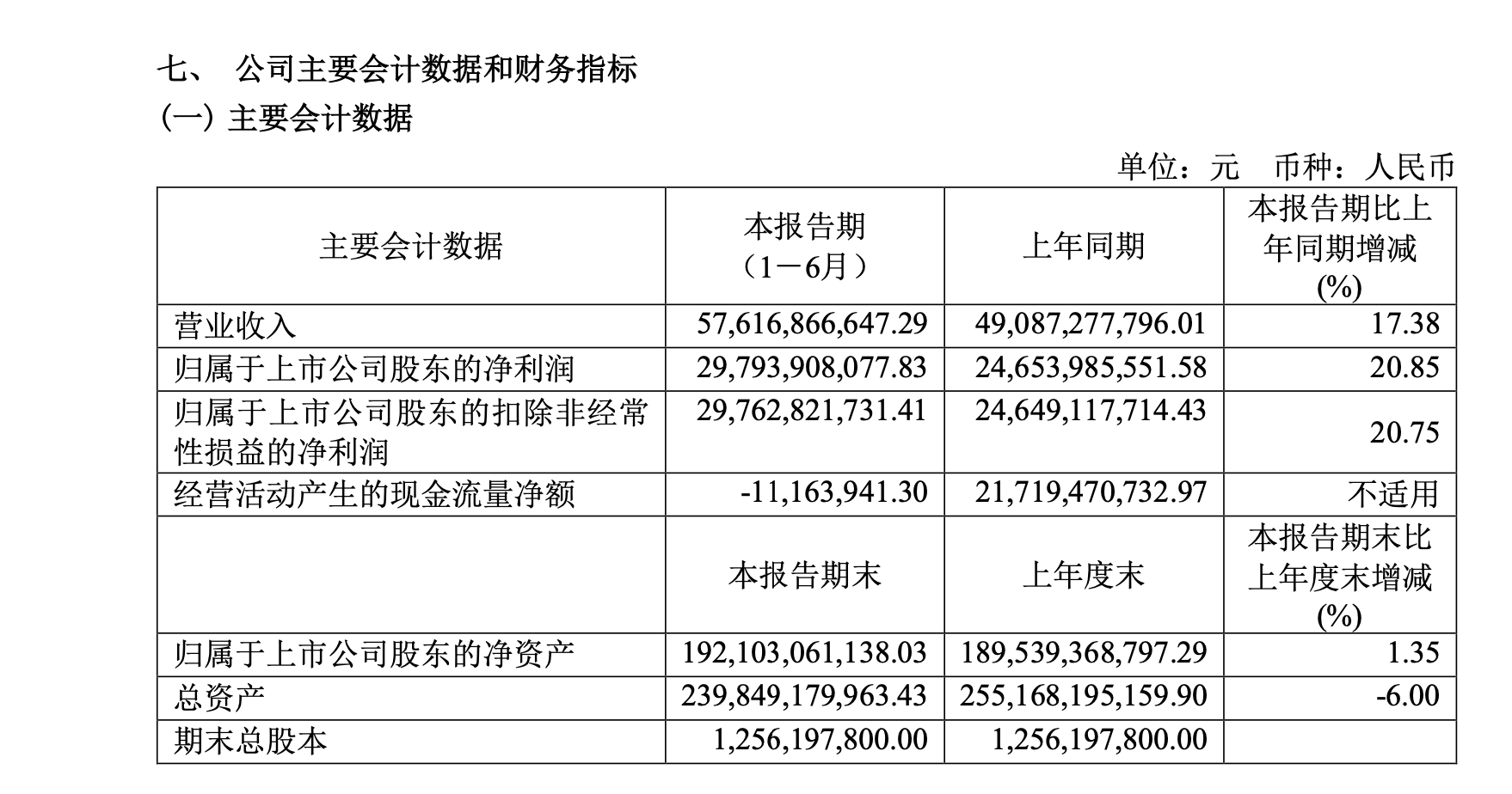 8月3日,贵州茅台酒股份有限公司(以下简称“贵州茅台”)(600519)发布《2022年半年度报告》显示,今年上半年实现营业收入576.17亿元,同比提升17.38%;归属于上市公司股东的净利润为297.94亿元,同比提升20.85%。