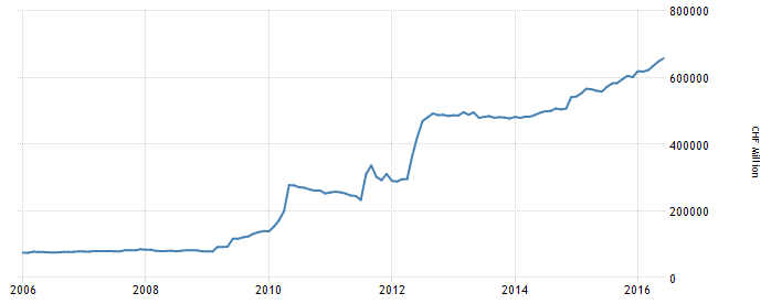 全球投资者的避险情绪到了何种地步?瑞士央行的外汇储备规模也许能给出一个答案。瑞士经济和货币一直以来都被投资者认为是最安全的避风港之一。每当金融市场动荡,尤其是欧洲,外部投资者就会蜂拥买入瑞士法郎。