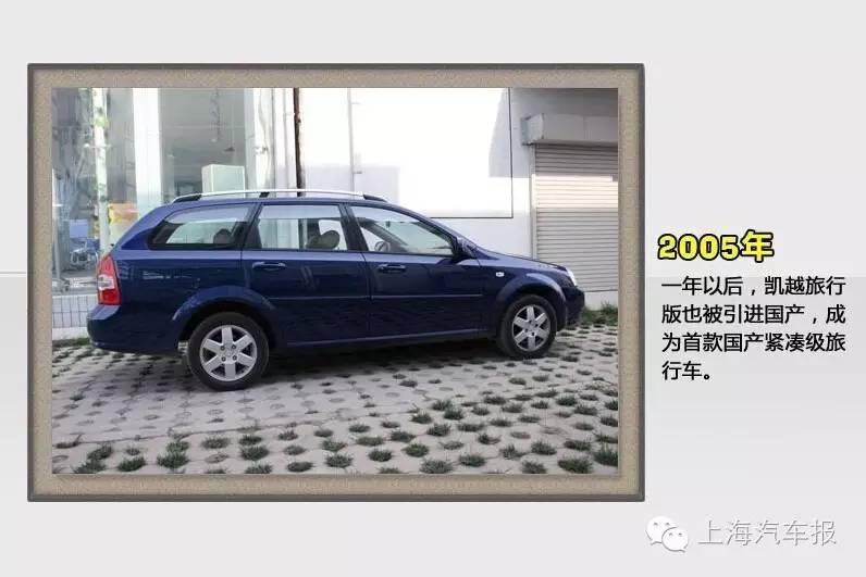2005年11月在2005年广州国际车展上,凯越旅行车亮相,开创了全新的“现代家庭旅行车”细分市场,填补了国内主流中级家轿市场的一项空白,并为消费者带来更全面、个性化的选择。凯越旅行车是继两厢车HRV推出后,别克车系完整化和多样化进程中的又一重要举措,别克凯越由此成为当时国内单一车系下车型阵容最齐全的轿车子品牌。