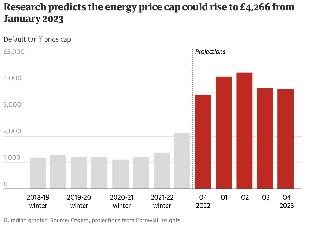 破10的通胀数字主要归因于英国天然气和电力市场管理局将在10月再次上调能源收费上限。根据咨询公司Cornwall Insights的预测,明年年初的家庭年能源价格上限将高达4266英镑,并在明年4月之后再次攀升至4426英镑。