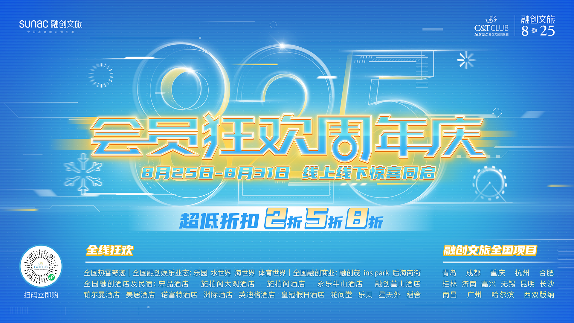更多“8.25会员狂欢周年庆”产品信息请关注“融创文旅俱乐部”微信小程序。
