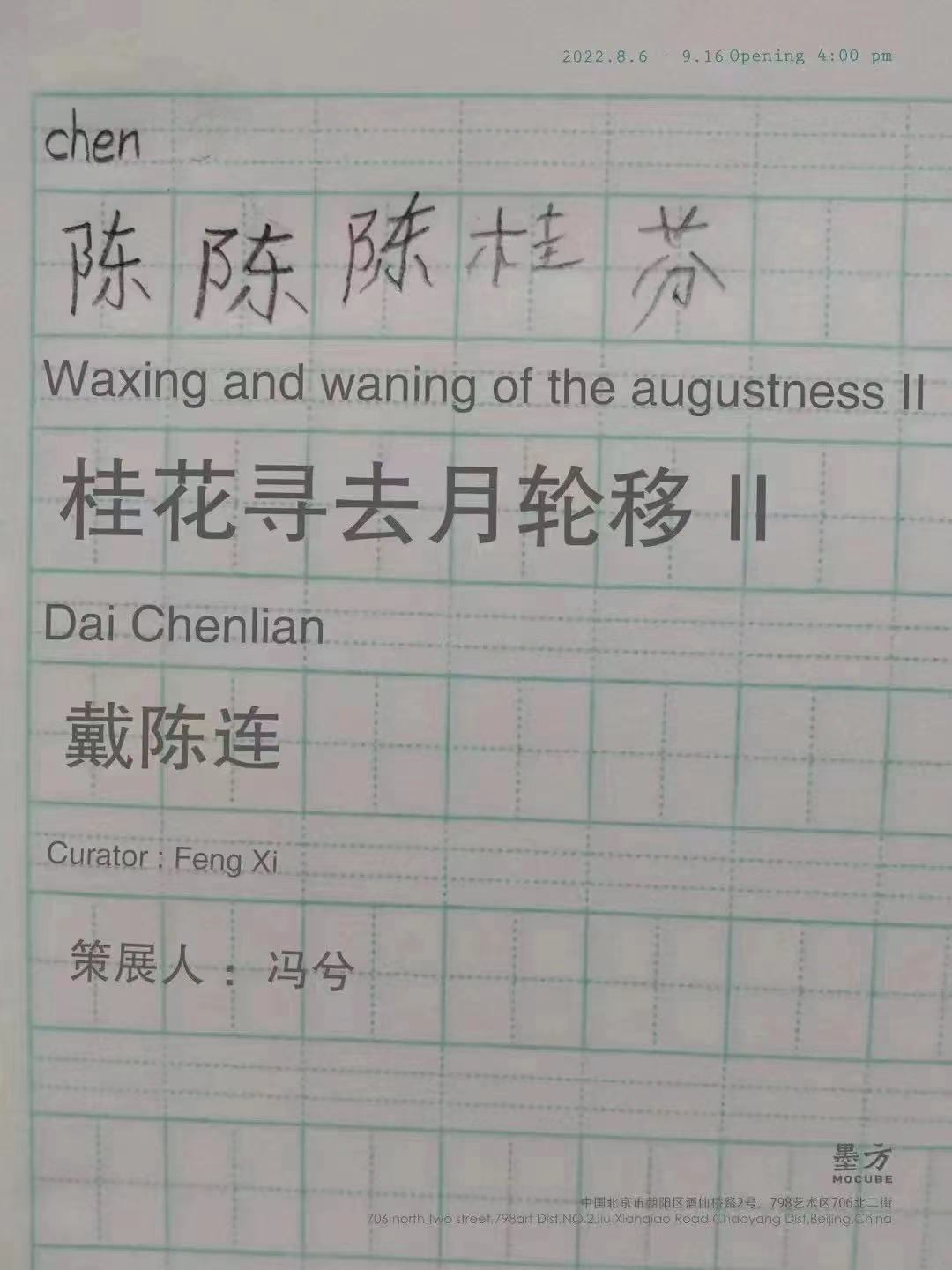 “桂花寻去月轮移”是唐代诗人李商隐的诗句,也是本次展览的题目。在现场,艺术家戴陈连将会展示“母亲三部曲”系列作品的第二部,包含绘画和表演作品,而他的母亲正是出生于农历8月、桂花飘香之时。
