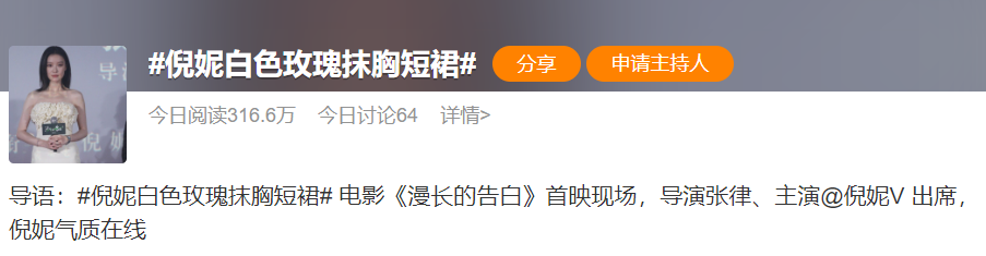 打开倪妮的百度百科,各大时尚杂志的写真篇幅远超过她电影、电视剧的篇幅,晚礼服造型、穿搭出圈上热搜,活动中的一句脱口而出“宝贝儿”就能让倪妮成为网友们讨论的焦点。漂亮已经成了普通大众提到她时的第一反应,并且日渐模糊掉她演员的身份。