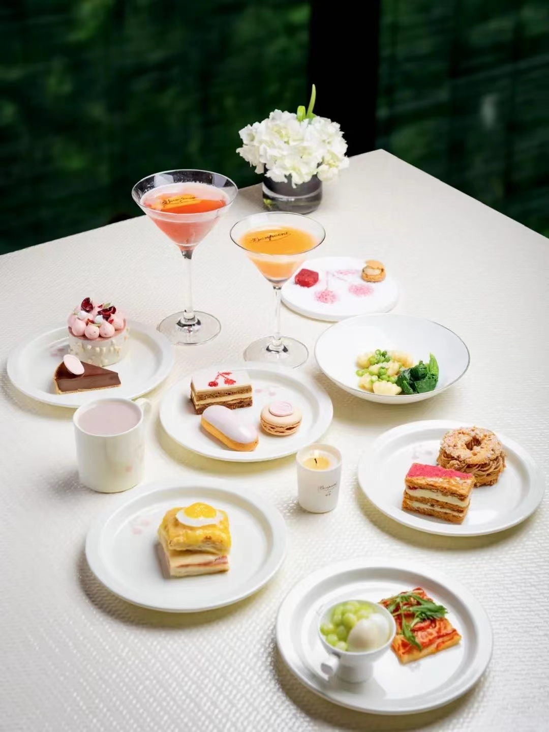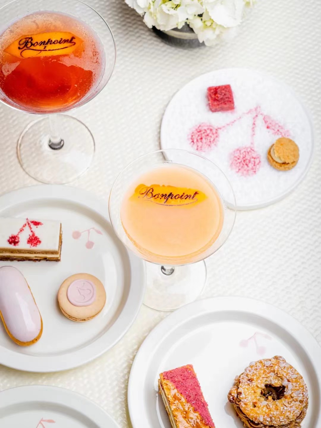 法式咸点、甜点,搭配清爽果汁与奶昔,令梦幻气息萦绕鼻尖唇齿。“漫游左岸”歌剧院蛋糕顶部的明媚点缀,“童梦印记”香草马卡龙上的可爱标志,俏皮灵动的 Bonpoint 小樱桃跃动于餐点之间。融汇自然诗意元素及法式浪漫意趣,全套夏日周末限定早午餐菜单氤氲出一场与巴黎的无尽邂逅。