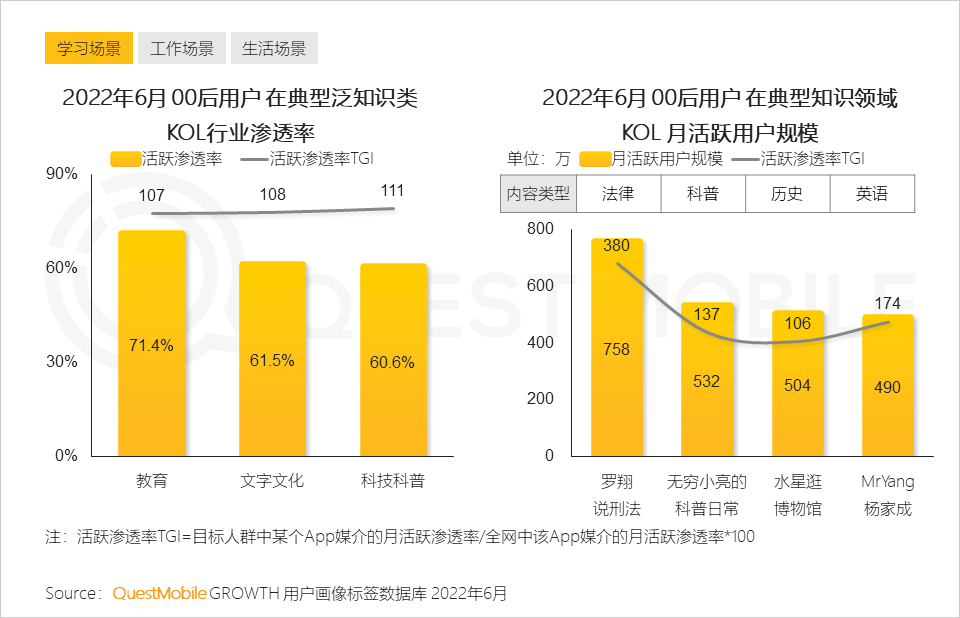 1.2 知识传播形式的多元化,让Z世代获取知识途径更加便捷,各领域知识达人们也深受年轻求知者的喜爱,互联网的便捷化也对他们的知识体系塑造起到了重要影响