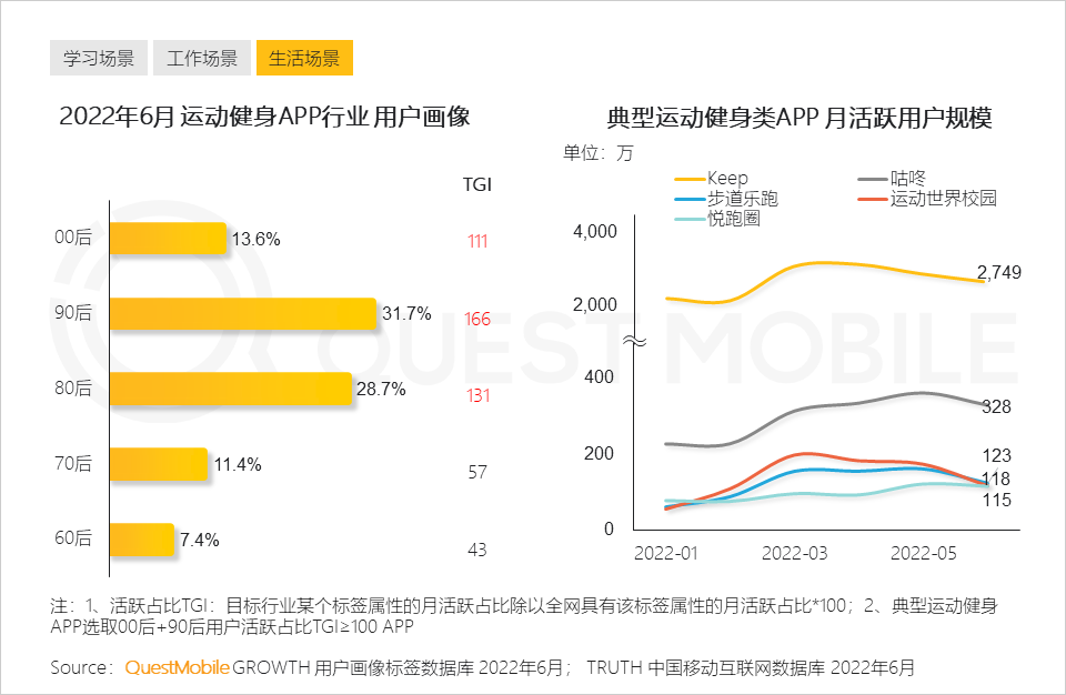 1.6 保持健康及身材的动力驱使下,Z世代用户亦表现出运动的一面,带动运动健身类APP的流量增长