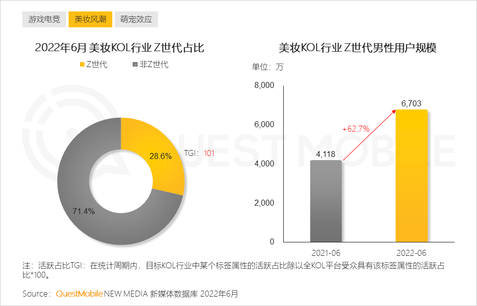 2.2 更加注重外形管理的Z世代,已习惯通过美妆KOL获取更多护肤经验;受众群体亦在扩充,美妆类内容受众中Z世代男性用户规模大幅增长