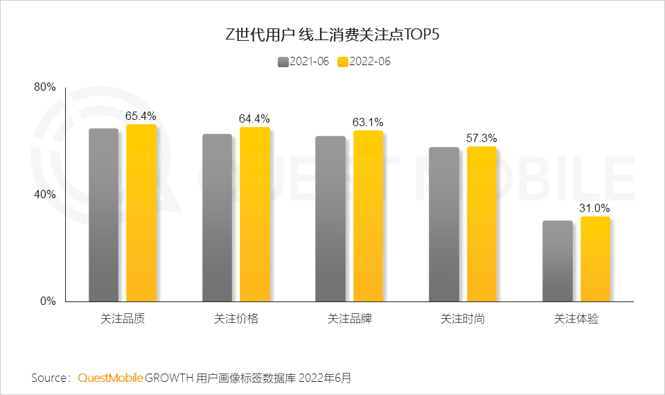 2、Z世代用户在追求时尚潮流、购物体验的同时,消费也更加理性,追求“质价比”的消费理念,使其对品质的关注放在首位