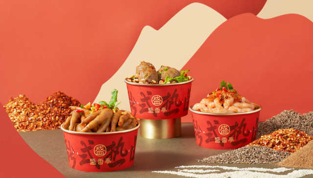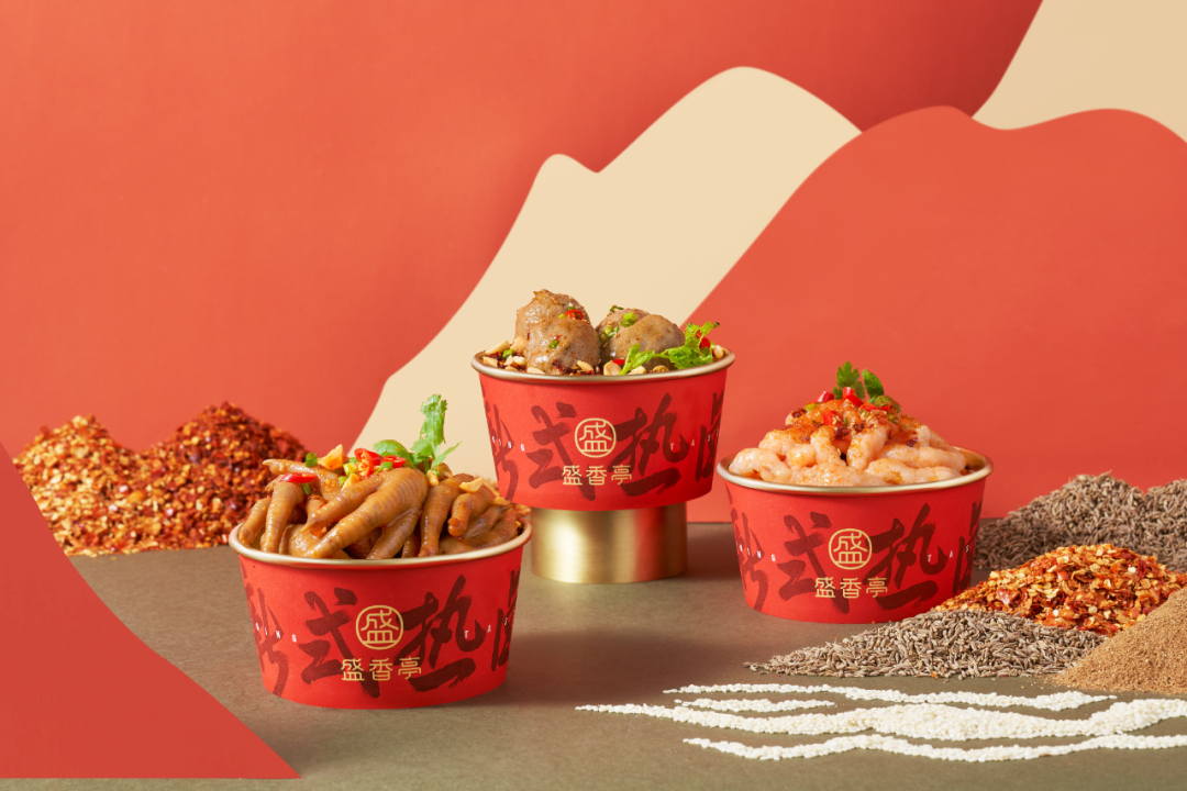 新式热卤品牌“盛香亭”将传统与潮流相结合,用“一粉、一酱料、一酱包”实现“一锅一卤”的发展可能性,在鸭脖、鸭翅、鸭架等传统卤味产品中加入了卤鱿鱼、卤面、卤虾、卤虾滑等作为搭配,门店还推出了冰粉等产品。