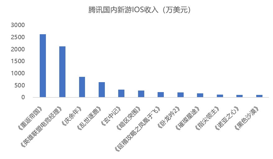 截至目前,国内13款新游只有《重返帝国》、《英雄联盟电竞经理》、《暗区突围》还在IOS畅销榜前100,其余新游已经跌出了前200名,而后两款游戏刚上线,尚处于上线红利期。