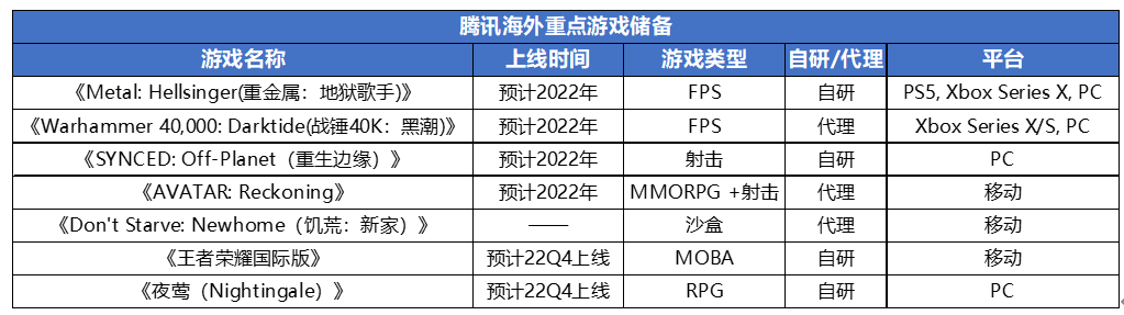 今年腾讯在海外发布的多款端游新品均出自腾讯收购的游戏厂商,可以预期的是,腾讯所收购的游戏公司将迎来新品兑现期,未来可以极大地丰富腾讯的海外产品线。