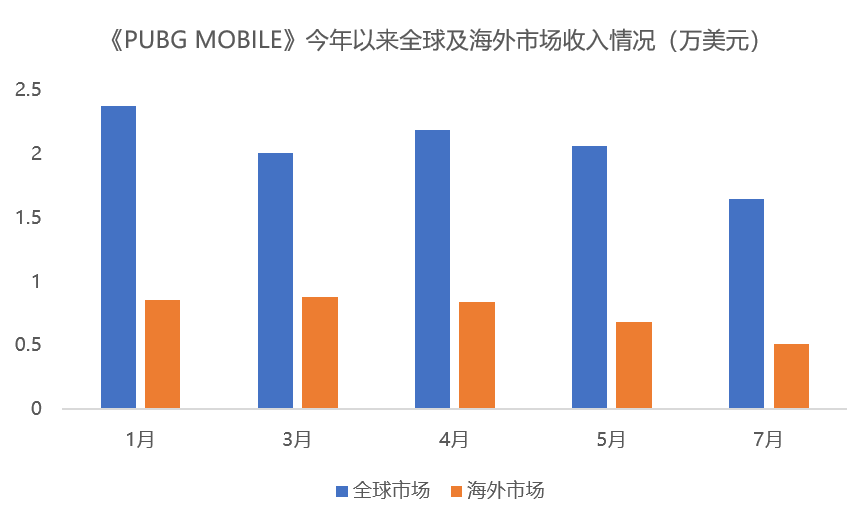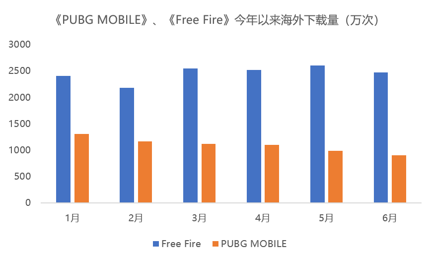 《PUBG MOBILE》今年以来海外收入和下载量均呈现较为明显的下降趋势。单从下载量来看,《PUBG MOBILE》下载量仅为低配版吃鸡《Free Fire》的1/2。