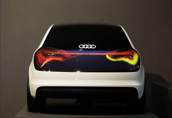 在2013年CES展会上,奥迪发布了OLED(有机发光二极管)照明技术。相比LED照明技术,矩阵式OLED尾灯射出的光非常平和均匀,并且不会减弱。奥迪通过OLED技术,研发出了一个智能尾灯群,其智能尾灯群不仅外观十分亮眼,且还能识别能见度,会根据路况、车速、天气等因素自动调整尾灯的亮度,以提醒后车保持距离,能大大提高汽车的主动安全性。
