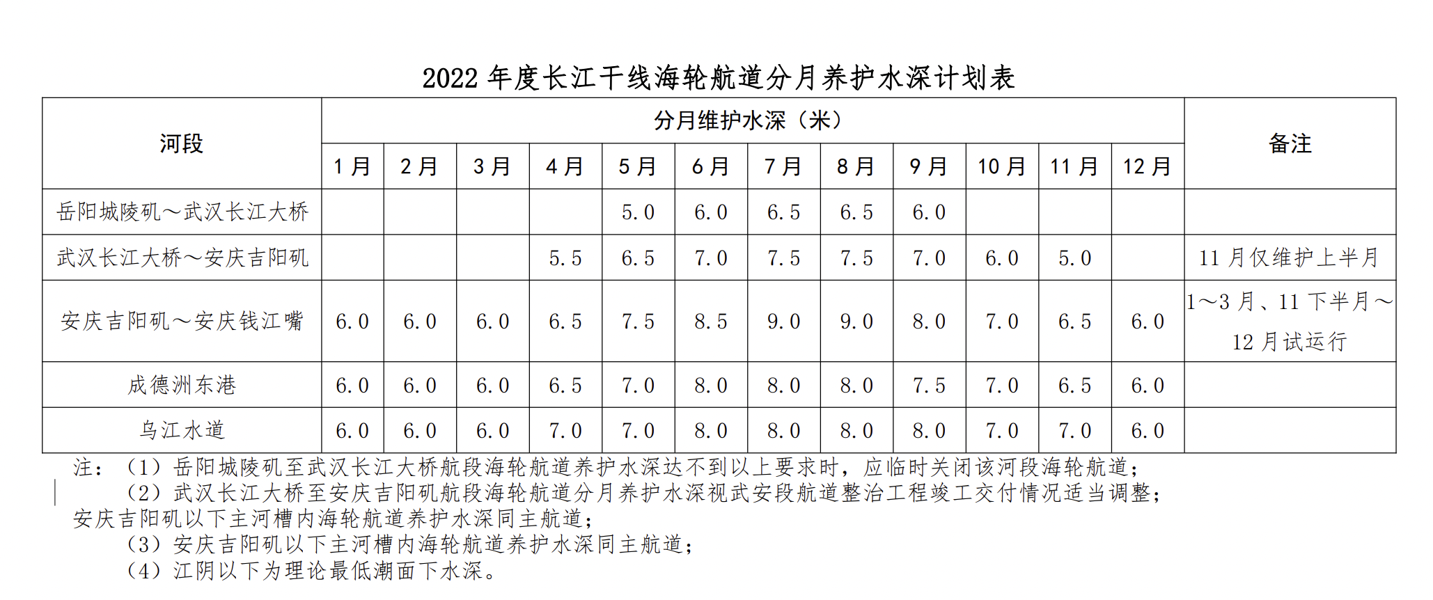 界面新闻了解到,长江干线武桥至城陵矶河段海轮航道开放的时间为每年5月初至9月底,其中7、8月可望维护水深均为6.5m。而长江干线安庆至武汉河段海轮航道的开放的时间为每年4月初至11月,7、8月可望维护水深均为7.5m。若养护水深达不到要求,就会临时关闭相关航道。