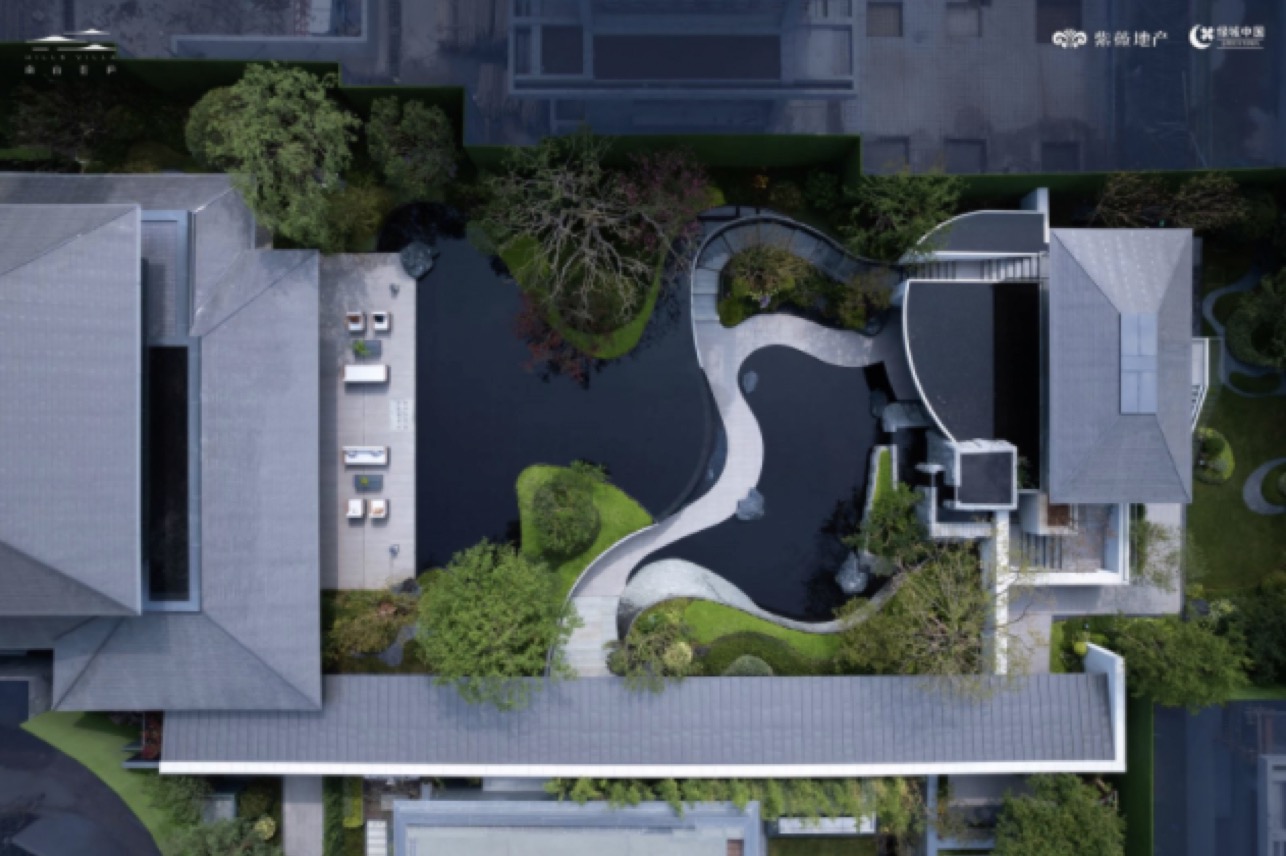 园外,秦岭苍岚环翠,在诗琴画意中,履迹南山风物与地标,遍赏山川云海有大美而不言;园内,以原生山水为灵感,以“引山于园”手法设计的园林,将南山深藏的自然逸趣,渗透进每一寸生活空间。隐一园山水,藏一庐闲情,以此礼遇长安人心中的山居梦。初入园林,清池照壁引人入胜,芝兰劲松雅迎友朋。“揖礼”形态打造的入口水景,不仅流传承南山文化,亦让道家自然主义思想流向未来。“人之所乐,于欢场中享娱情,在清境中得睿智,而后者之乐尤深。”觅一清境,慎独内省,方为人生最大乐事。脚边一汪倒影山景的清泉,不止拉近了和远山的距离,也时刻给予居者临水自照,修葺心灵的生命启迪。 为还原原生态自然体验,遍寻全国,精选乌桕、朴树、樱花等植物,在“季季有花、时时有景”的美学场域,翻阅四季风景;游园动线中,流云通廊、星月环道、观澜亭宛如天作般自然嵌入,层层递进归家情绪。