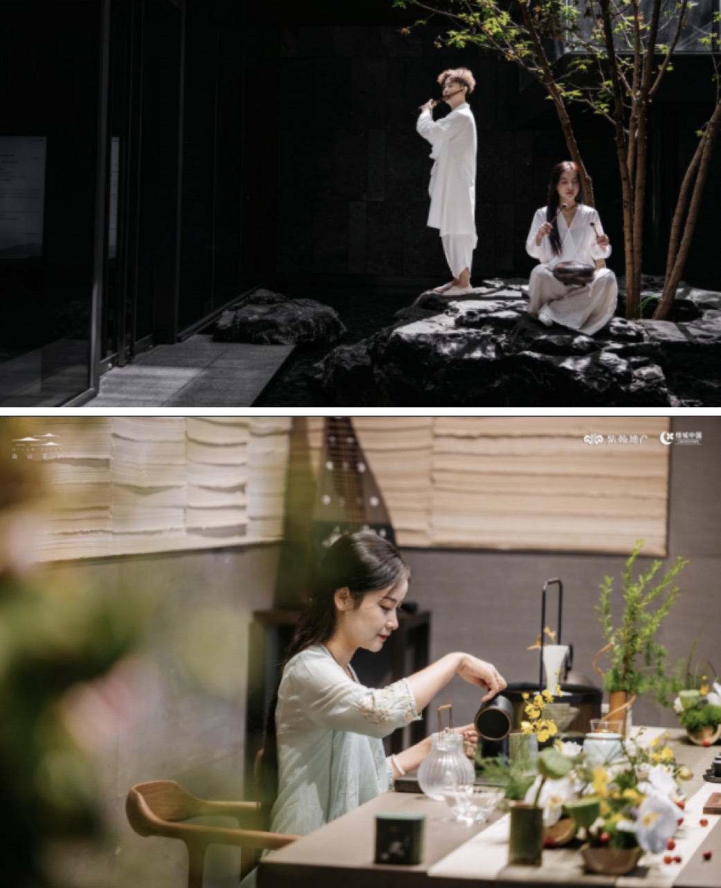 琴瑟和鸣,品茗悟山,是为禅;曲水霓裳,梦回唐宋,视为境;二者交融,实为境。入境雲庐,拾阶而上,一场由东方美学与生活场景交融的独特景卷,与群贤内心共鸣。当一部自然的和鸣曲——《秦岭的腔》在眼帘呈映时,在山风、鸟兽、花草、溪流、泉石的天然伴奏中,四方宾朋沉浸山水音乐间,听见山河万物在内心回响,物外超然。