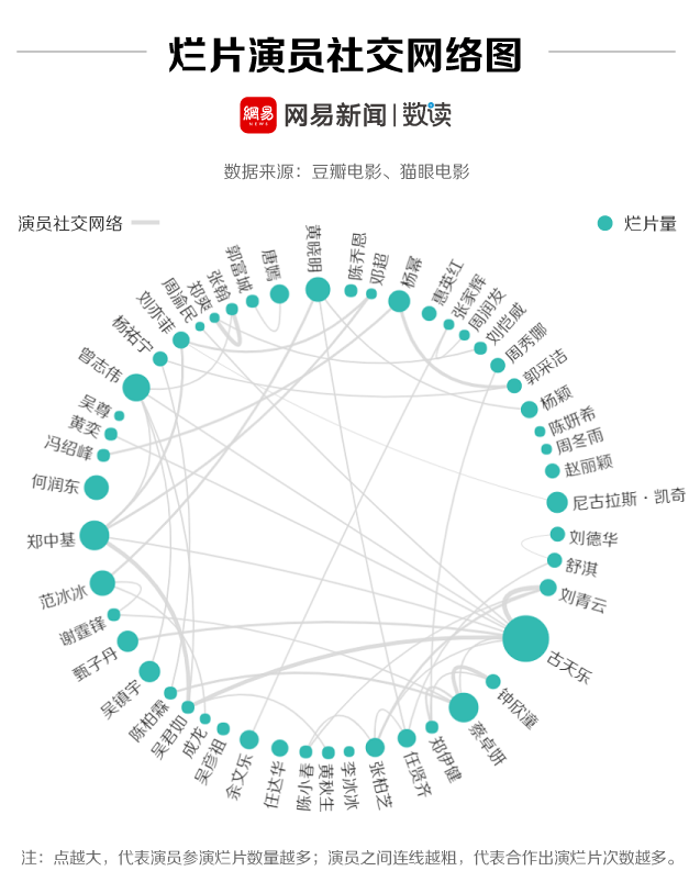 网易数读,在统计了1.6万部电影后,最后得出古天乐的烂片是最多、最烂的。