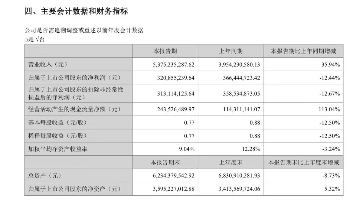 8月23日,华致酒行连锁管理股份有限公司(以下简称“华致酒行”)(300755)发布《2022年半年度报告》显示,上半年公司实现营业收入53.75亿元,同比提升35.94%;归属于上市公司股东的净利润为3.21亿元,同比下降12.44%;经营活动产生的现金流量净额为2.44亿元,同比提升113.04%。其中,白酒业务实现营收48.94亿元,同比提升42.14%。