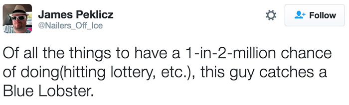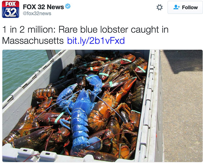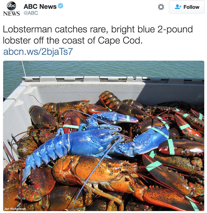 网友纷纷表示:“这个世界上有很多两百万分之一的珍惜物种,比如中彩票啥了的,但是这哥们儿就只发现了一只蓝色龙虾。”