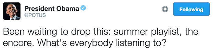 即将卸任的美国总统奥巴马被誉为美国历史上最酷的总统,最近他又推出了自己的“奥巴马2016夏日歌单”,你可以对照这份歌单听听美国总统平时都在听什么歌。