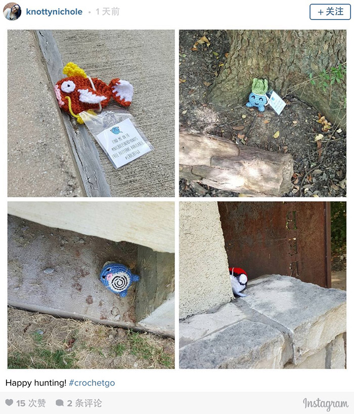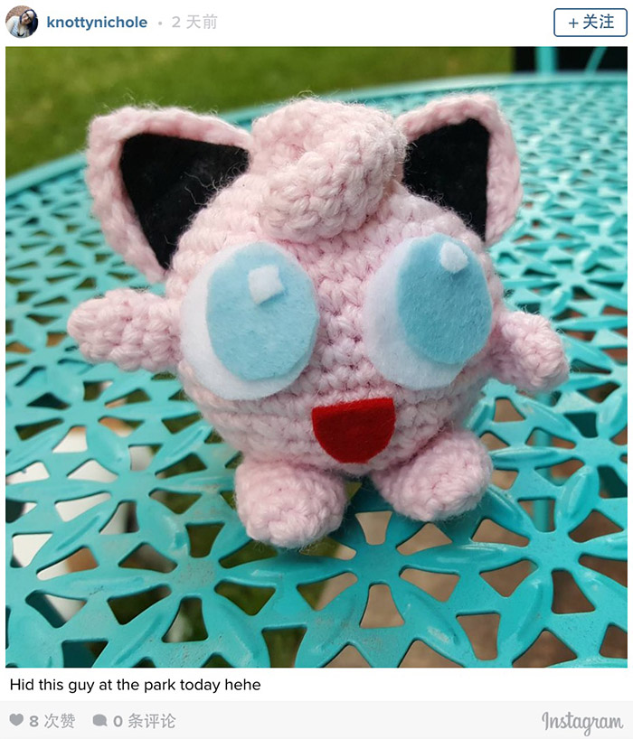 随着Pokemon Go在世界范围内的越发流行,许多玩家想出了全新的游玩方法,德克萨斯州一位心灵手巧的玩家自己编织了许多小精灵玩偶,还将它们放在附近的小精灵道馆处,这样其他玩家来抓小精灵时,就可以收获一只真正的小精灵了。