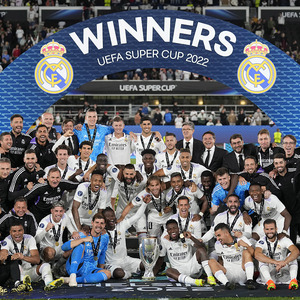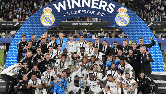在2021-2022赛季的欧洲超级杯决赛中,皇马第五次夺冠,追平巴萨和AC米兰,并列欧超杯夺冠数第一。在同赛季的西甲、欧冠、西班牙超级杯等赛事中,皇马同样捧起冠军奖杯。
