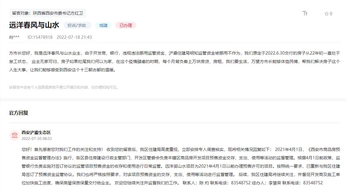 远洋春风与山水项目因延期交房在人民网留言板被业主投诉。该项目自7月份以来已经进行了多个批次的登记,不过登记情况均一般。