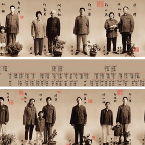 邵逸农与慕辰的《家族图谱》系列结合家族史与个人史,描述大时代背景下一个上下四代的大家族中 103人各异的命运。他们夫妇走访分散于全国各地的家族成员,并对其展开访谈与拍摄。他们请这些家人穿上中山装,通过具有强烈符号特征的服装对个体精神与肉身的约束,召唤特定时代的家族中人的面目,并呈现于不断展开的长卷中。而以册页方式做成的摄影画册,则意图通过传统的观看方式来重建独立个体、家庭与家族整体的新关系。他们也均衡分配摄影者的注意力于每个个体的独特命运,以图像与文字结合,使得家族史的叙述更具质感,同时赋予作品以历史纵深感。相当多的肖像摄影经常习惯性地以呈现对象为终极目标,至于肖像“传主”的历史与命运却往往付之阙如。结果,伴随作品留名于史的只是肖像制作者自身。而邵逸农与慕辰肖像摄影的观念与表现手法,则努力给予对象本身以历史发言权。这样的努力,既可视化了邵氏家族中个人的命运,也通过人与家的呈现带出了国家与社会的历史变迁。