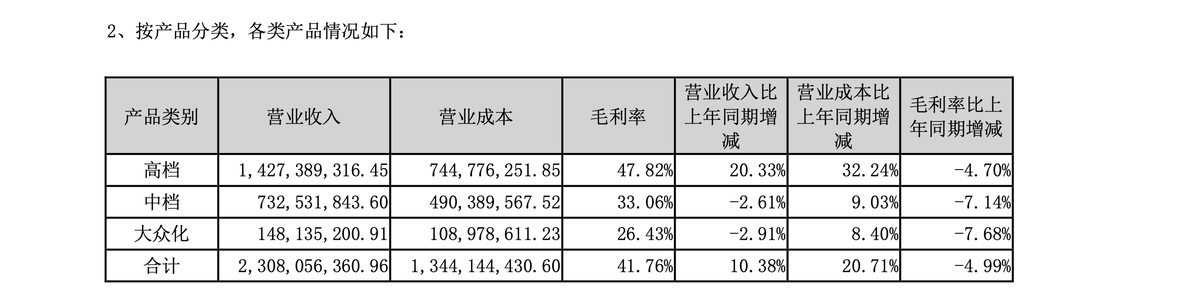 此外,上半年珠江啤酒主要以高档产品为主。根据公告显示,1-6月珠江啤酒高档、中档以及大众化产品分别实现营业收入14.27亿元、7.33亿元、1.48亿元,同比提升20.33%、-2.61%以及-2.91%。
