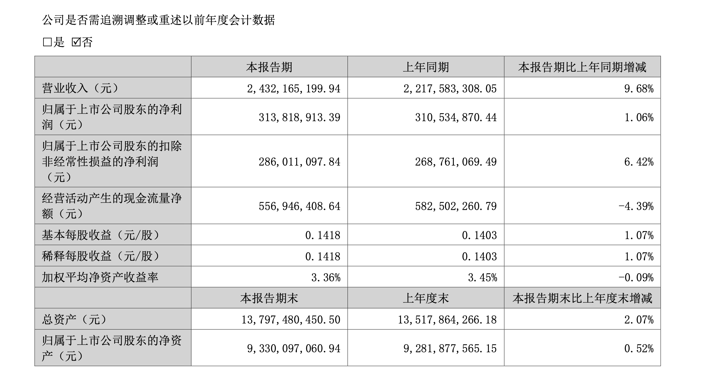 8月24日,广州珠江啤酒股份有限公司(以下简称“珠江啤酒”)(002461)发布《2022年半年度报告》显示,上半年公司实现营业收入24.32亿元,同比提升9.68%;归属于上市公司股东的净利润为3.14亿元,同比提升1.06%;经营活动产生的现金流量净额为5.57亿元,同比下降4.39%;实现啤酒销量 64.08 万吨,同比增长 2.79%,高端啤酒销量同比增长 15.71%,其中纯生类产品销量同比增长15.67%。