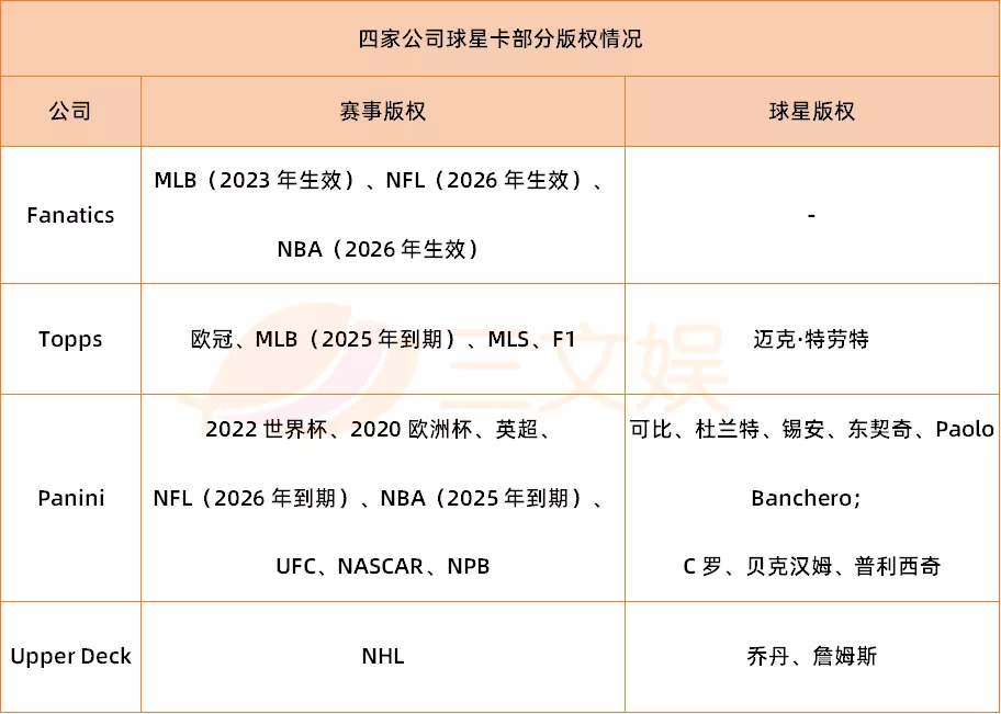 不过,球星卡市场的版权壁垒非常高,老牌的Topps、Panini都经营了数十年,后起之秀Fanatics依靠体育游戏和天量融资的“钞能力”在赶超,几个月前还以5亿美元收购了Panini。