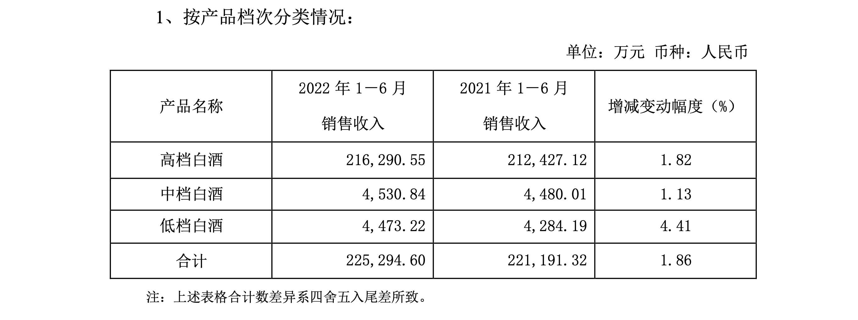 从产品档次来看,1-6月口子窖高档、中档、低档产品分别实现销售收入21.63亿元、4530.84万元、4473.22万元,同比提升1.82%、1.13%、4.41%。