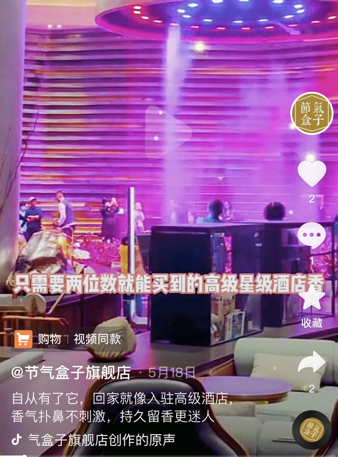 定价上,节气盒子主打一百元左右的低端价位带,并以此为核心卖点。在抖音平台上,节气盒子发布的短视频开场话术经常是“只需要两位数就能买到的高级星级酒店香”,或是“一杯奶茶钱就能用半年的高级香薰”。