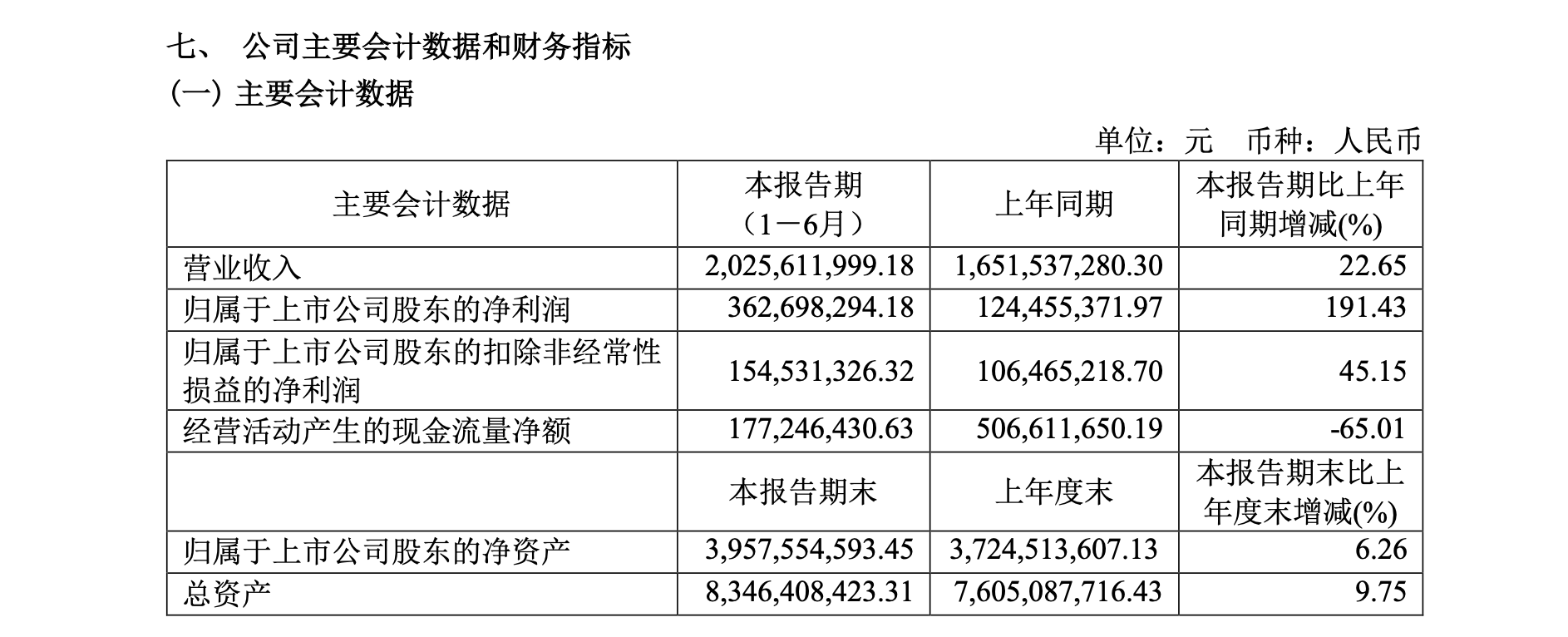 8月26日,河北衡水老白干酒业股份有限公司(以下简称“老白干酒”)(600559)发布《2022年半年度报告》显示,今年上半年,公司实现营业收入20.26亿元,同比提升22.65%;归属于上市公司股东的净利润为3.63亿元,同比提升191.43%;经营活动产生的现金流量净额为1.77亿元,同比下降65.01%。