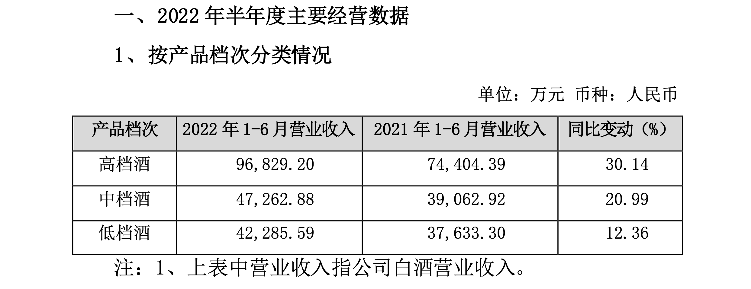 从产品层面来看,上半年老白干酒高档酒、中档酒以及低档酒分别实现营业收入9.68亿元、4.73亿元以及4.23亿元,同比提升30.14%、20.99%以及12.36%。