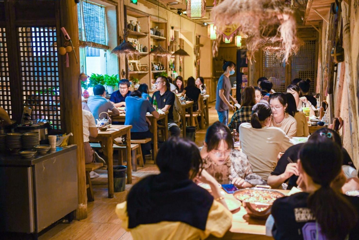 除了外卖业务有所增长,不少线下商家也迎来就餐高峰。