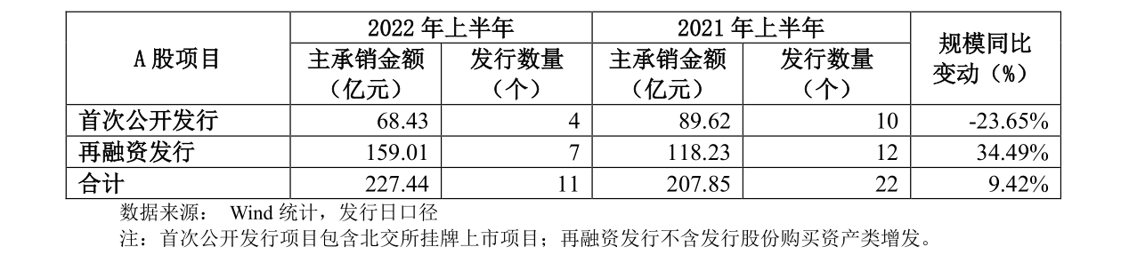截至2022年6月末,招商证券A股IPO项目4个,去年同期为10个;主承销金额68.43亿元,去年同期为89.62亿元,同比下降23.65%。