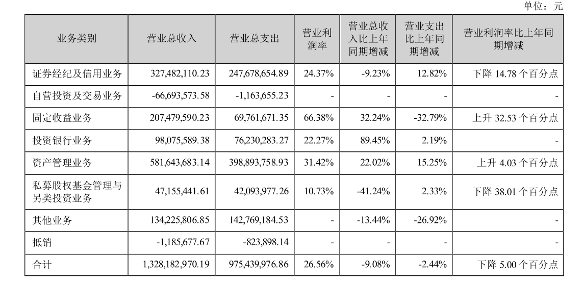 值得留意的是,自营和交易业务上半年下滑明显,亏损6669.36万元,去年同期则是盈利1.81亿元。其中公允价值变动收益为-9720.61万元,由盈转亏;投资收益为3.80亿元,同比下滑34.29%。