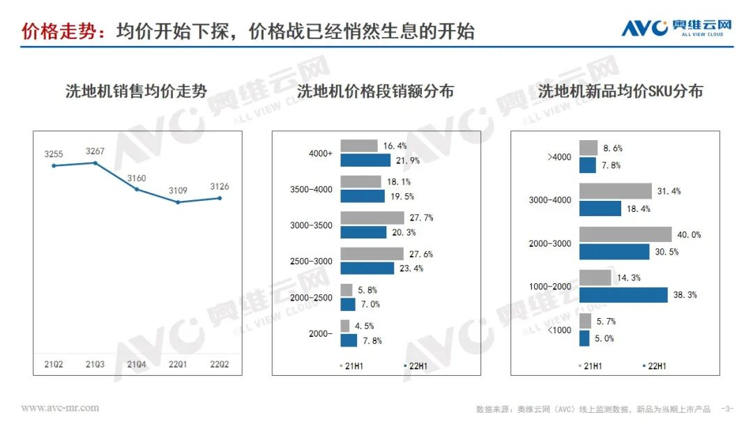 这款产品预售价为4590元,高于3100元的行业均价。不过,消费者似乎并不排斥高价洗地机。从奥维云网数据来看,在3000元往上的四个价位段中,销额旗鼓相当,今年4000元以上的产品销额同比还有上升。