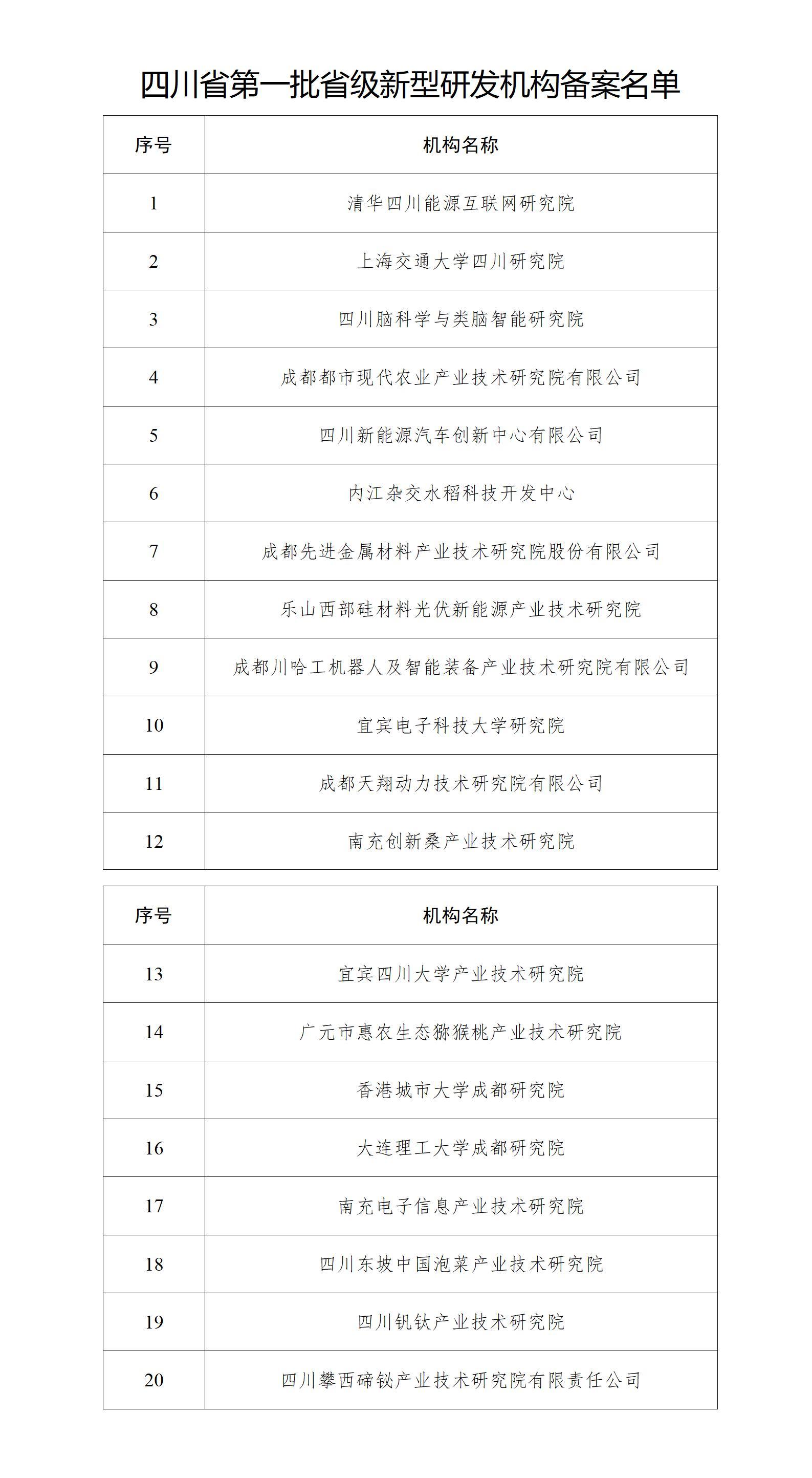 8月29日,科技厅发布四川省首批省级新型研发机构备案名单,清华四川能源互联网研究院、四川脑科学与类脑智能研究院、四川东坡中国泡菜产业技术研究院等20家机构为省级新型研发机构。此批新型研发机构,研究领域涵盖人工智能、动力电池、晶硅光伏、生物医药、农业等领域,主要集中在成都、宜宾、乐山、南充、眉山、攀枝花、雅安、广元、内江等市(州)。