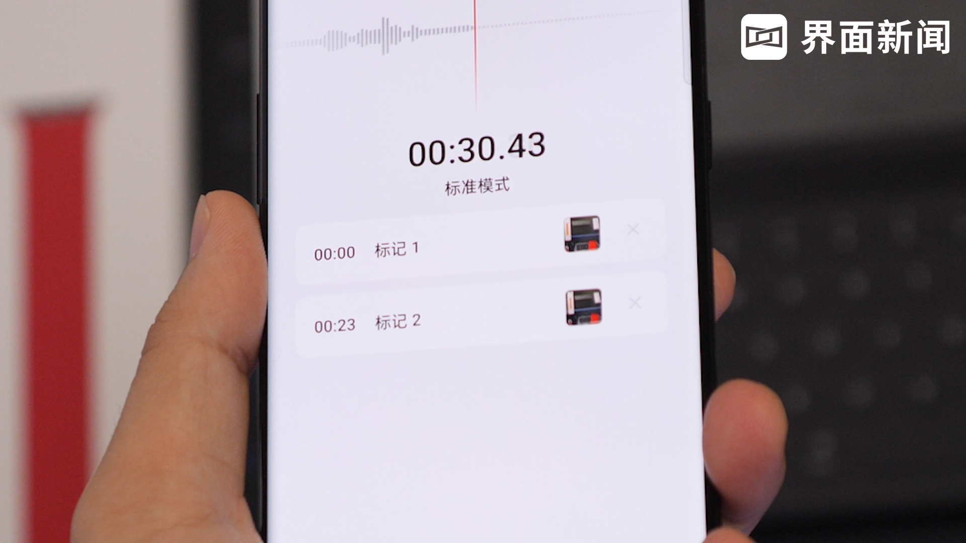 此外,在Coloros13内录音时,系统也提供“拍照”选项,所拍摄的图片会自动标记在录音的时间线上,这对于上课录音的同学非常友好,能够及时记录下老师讲解时的版书。