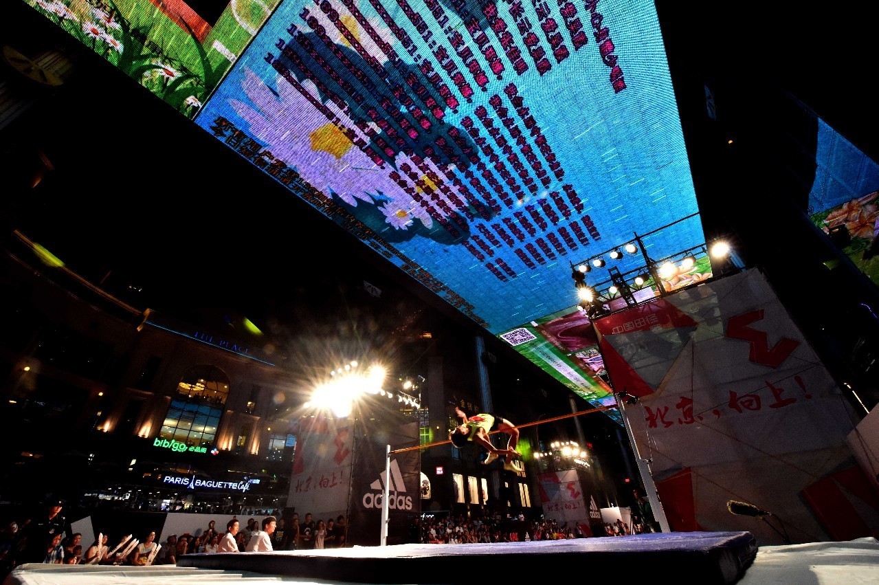 ▼2015年中国田径男子跳高精英赛在北京世贸天阶举行,把田径赛事放到闹市,是不错的推广方式