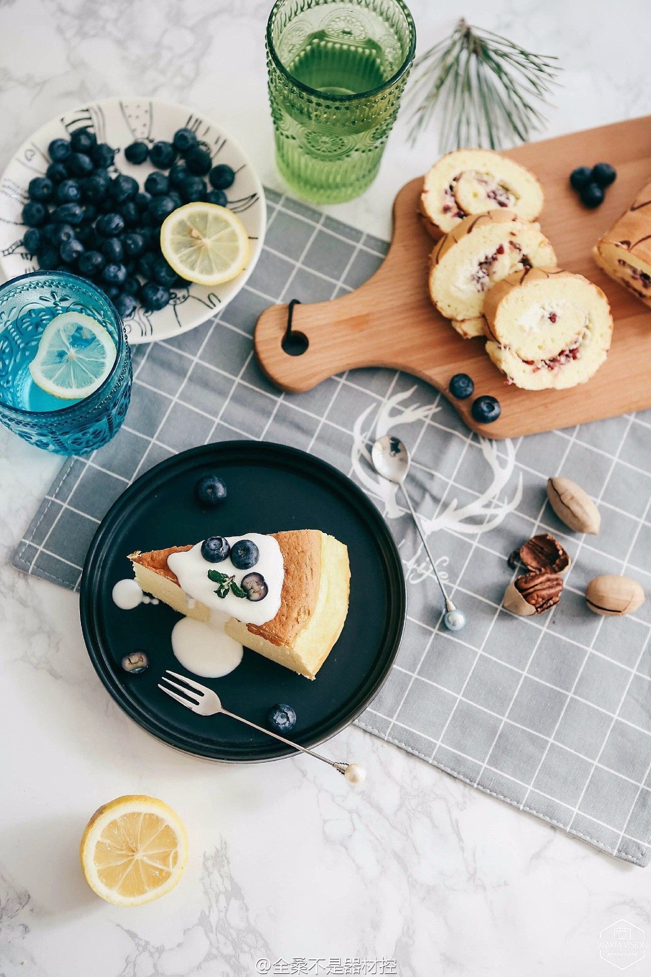 插花、刀叉、书本、调味瓶、酒杯、碟子……Anything,注意不是道具漂亮就好,要讲究搭配得和谐美观,可以从风格、颜色搭配、氛围的营造等多方面来考虑哦,这样画面才能显得更有层次感,要注意不要每次都拍得特别全,也要有一定取舍。
